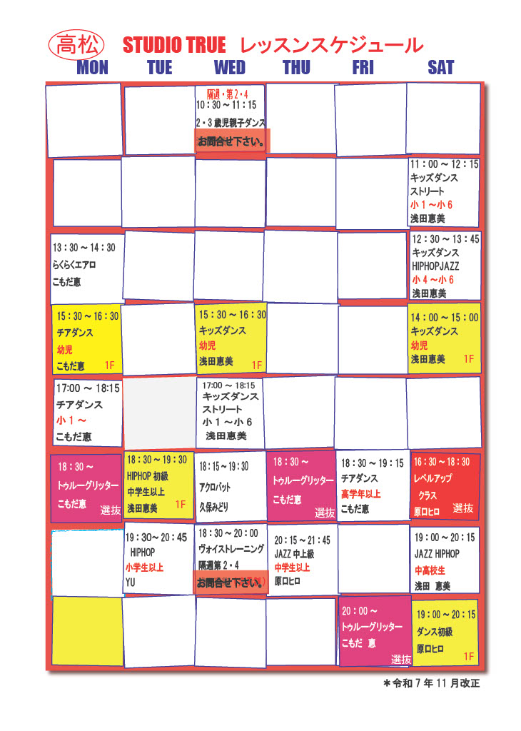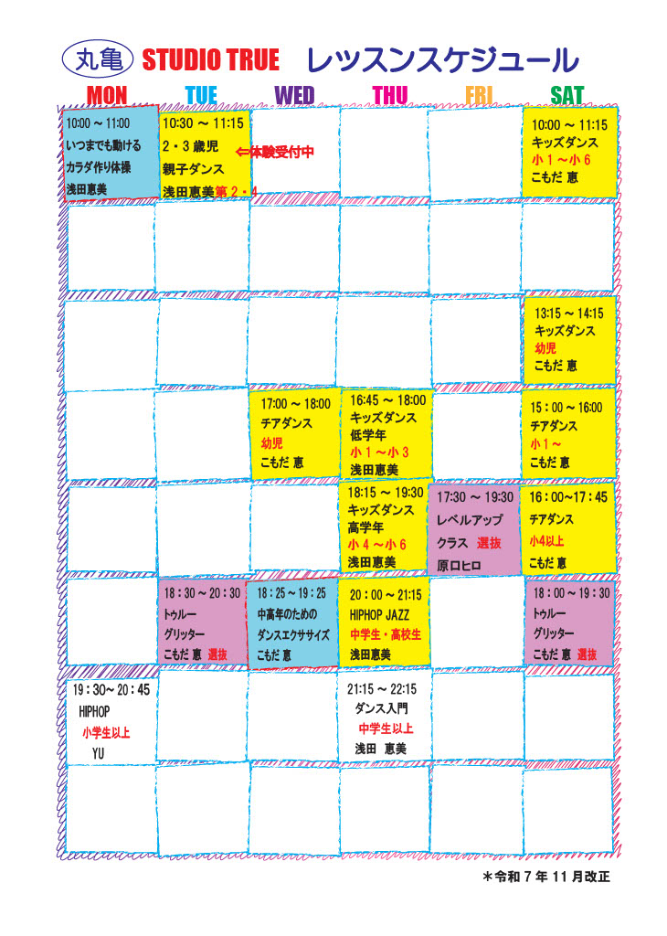 | <丸亀スタジオ> | 幼児〜小3 小1〜 小4〜 |